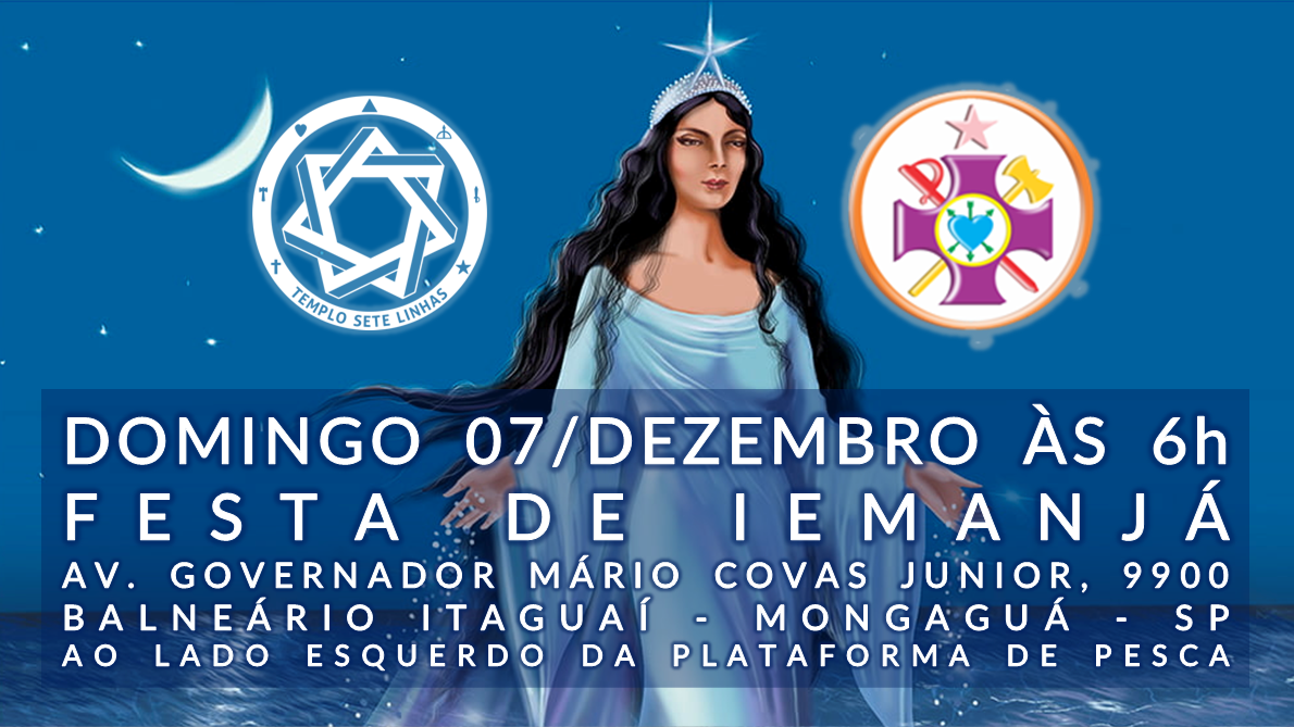 Nossa homenagem e gratidão será nesta data com Gira e Festejo de Iemanjá, em Mongaguá, SP, à 100 metros ao lado esquerdo da plataforma de pesca, juntamente com as tendas filiadas ao Primado do Brasil.
